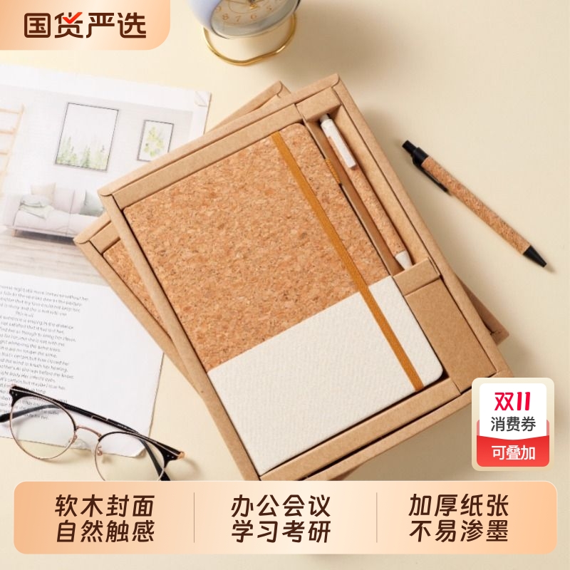 创意环保软木记事本商务套装绑带本中小学高校企业会议节日开学季高档