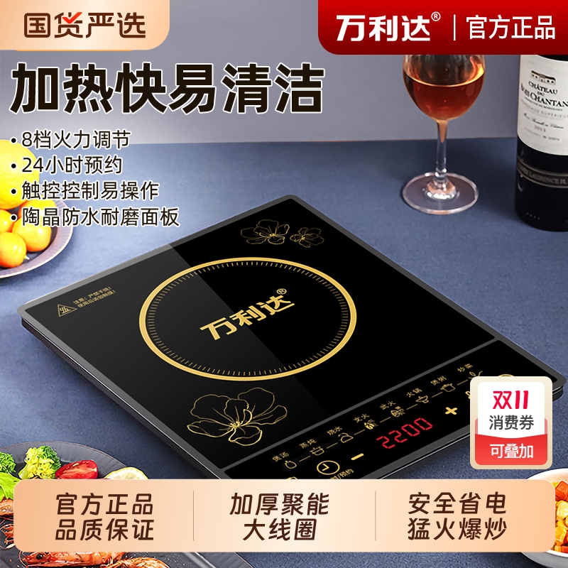 万利达家用电磁炉大功率2200W猛火爆炒菜多功能定时预约全自动