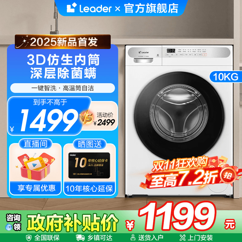 海尔白色新款洗衣机家用10公斤