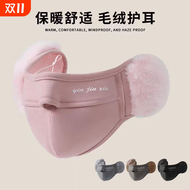 口罩冬季女骑行高颜值防寒护耳透气加厚毛绒保暖可洗耳罩男显脸小