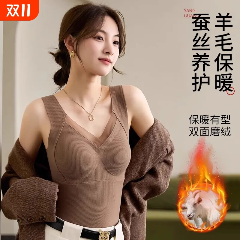 超薄秋冬季发热保暖内衣可外穿自带胸垫防寒修身加绒加厚无痕内衣