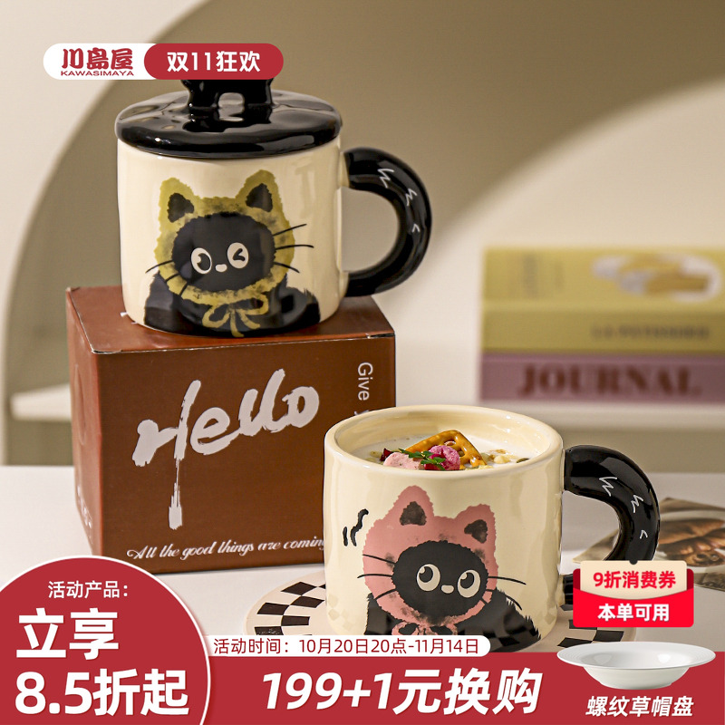 川岛屋猫咪陶瓷带盖马克杯伴手礼