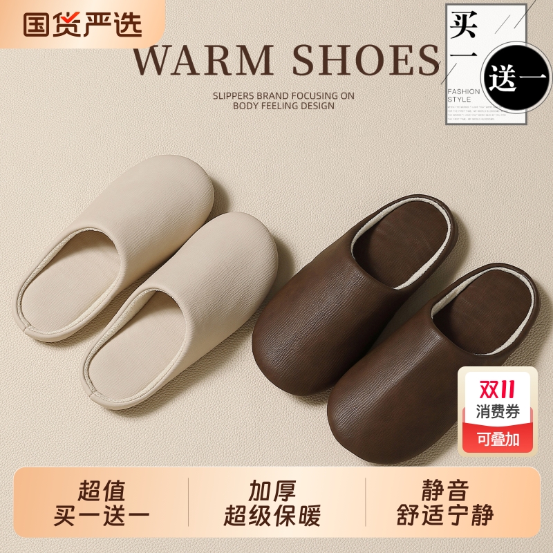 红豆棉拖鞋买一送一静音拖鞋冬女室内家居冬季情侣一对家用地板男