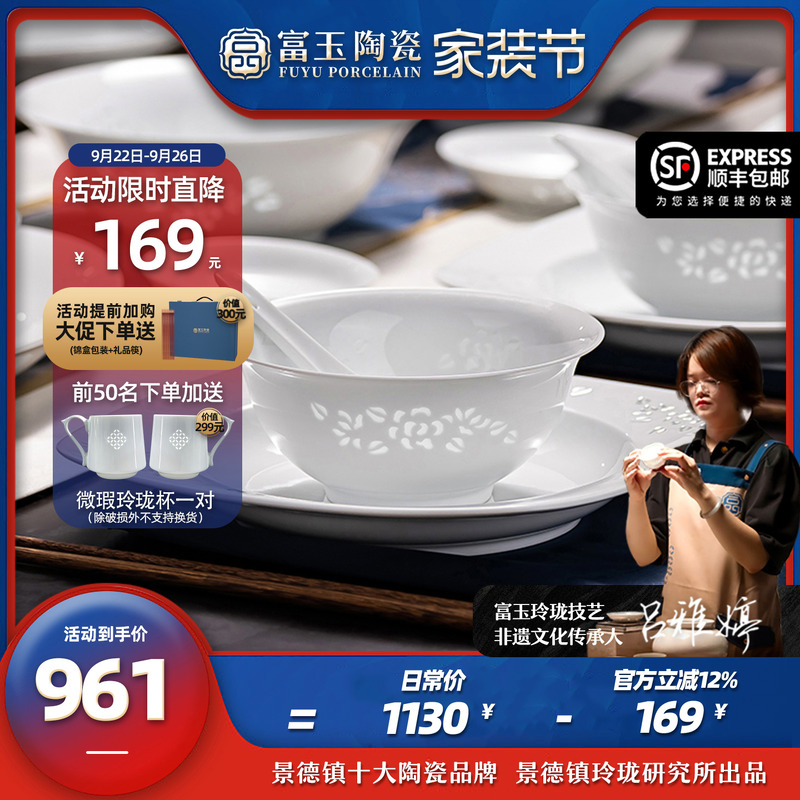景德镇高档珐琅彩餐具碗碟套装家用新中式碗盘碗具碗筷盘子乔迁礼
