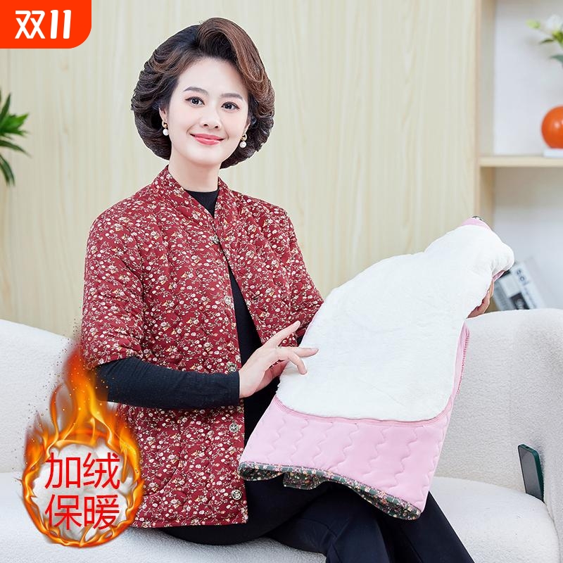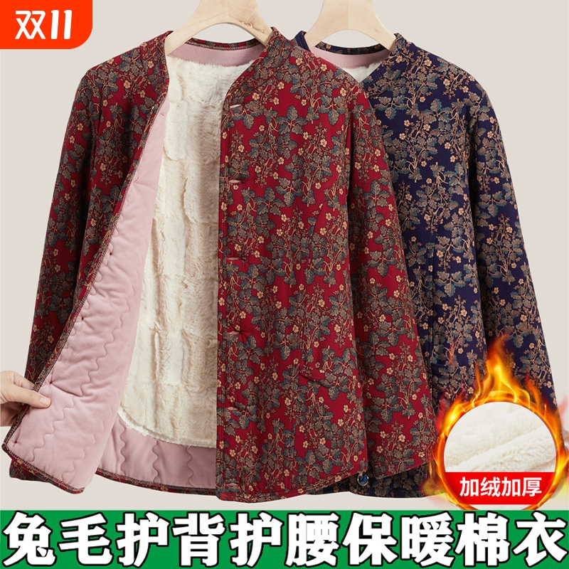 中老年人冬装小棉衣女奶奶加绒加厚外套妈妈装保暖老太太护腰棉袄