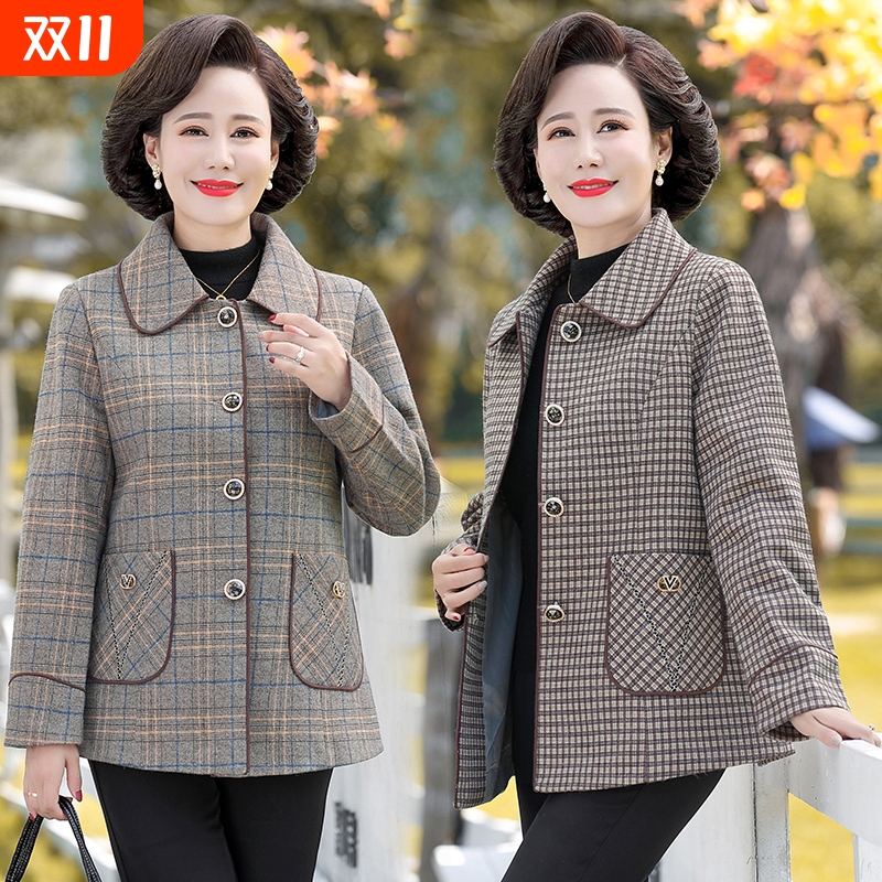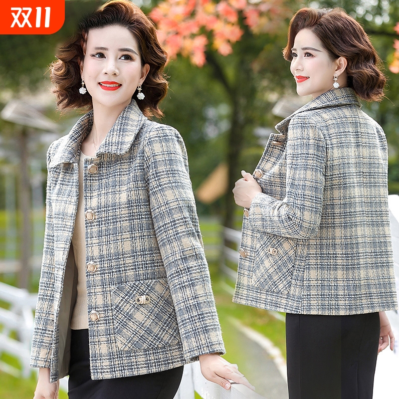 妈妈春装洋气外套中老年人女春秋高贵上衣中年女士格子小西装薄款