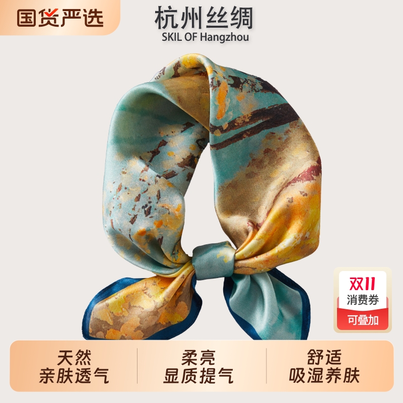真丝丝巾系脖高级感夏薄款发带桑蚕丝小方巾女2025新围脖妈妈款