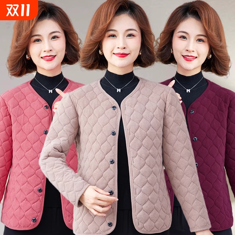 妈妈棉服女秋冬新款灯芯绒外套加厚保暖小棉袄大码女装洋气大气
