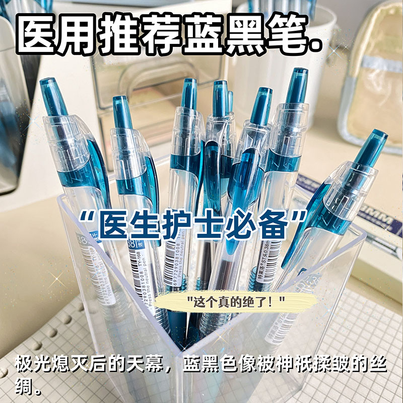 医护专用蓝黑笔按动中性笔治愈系墨蓝色0.38MM小学生用考试刷题
