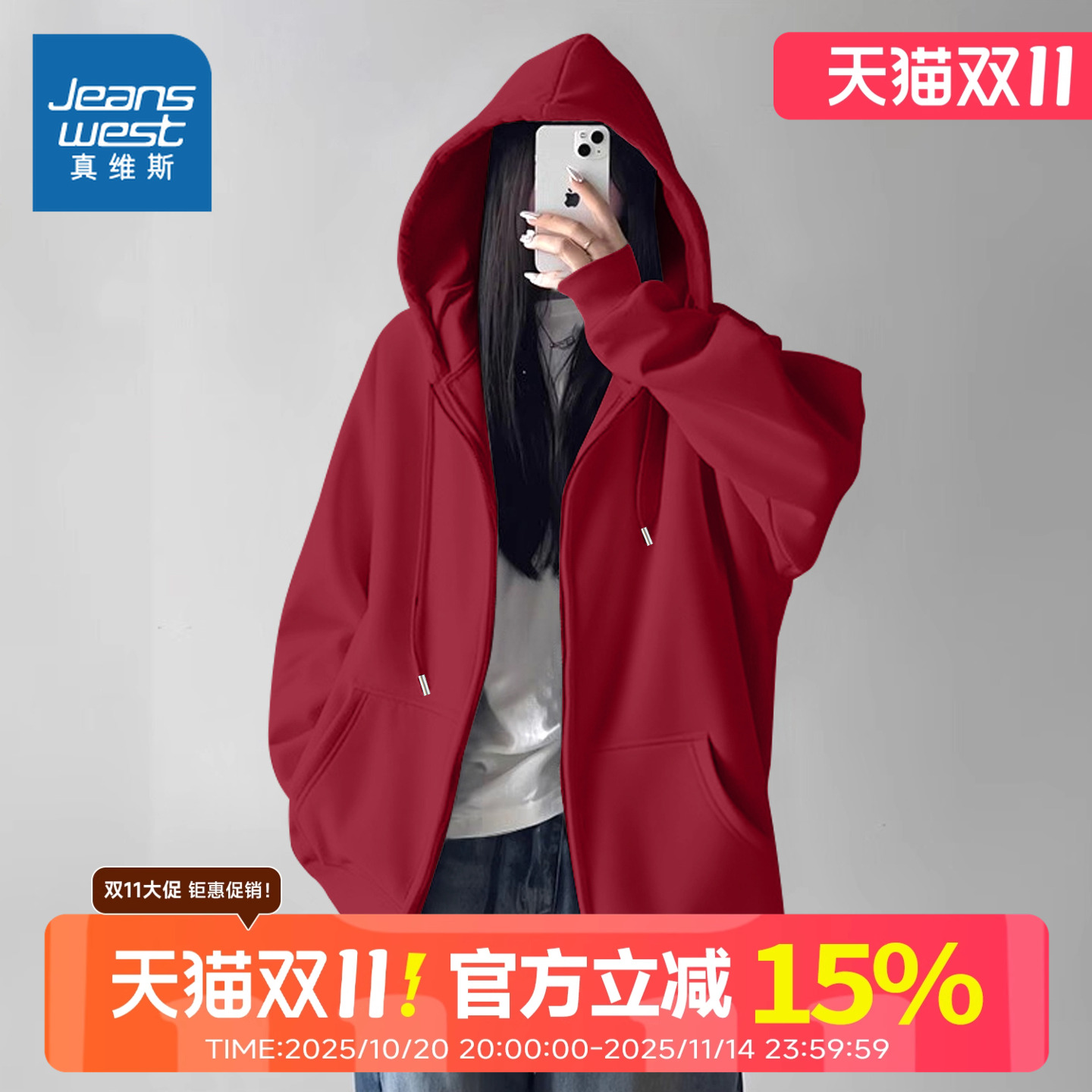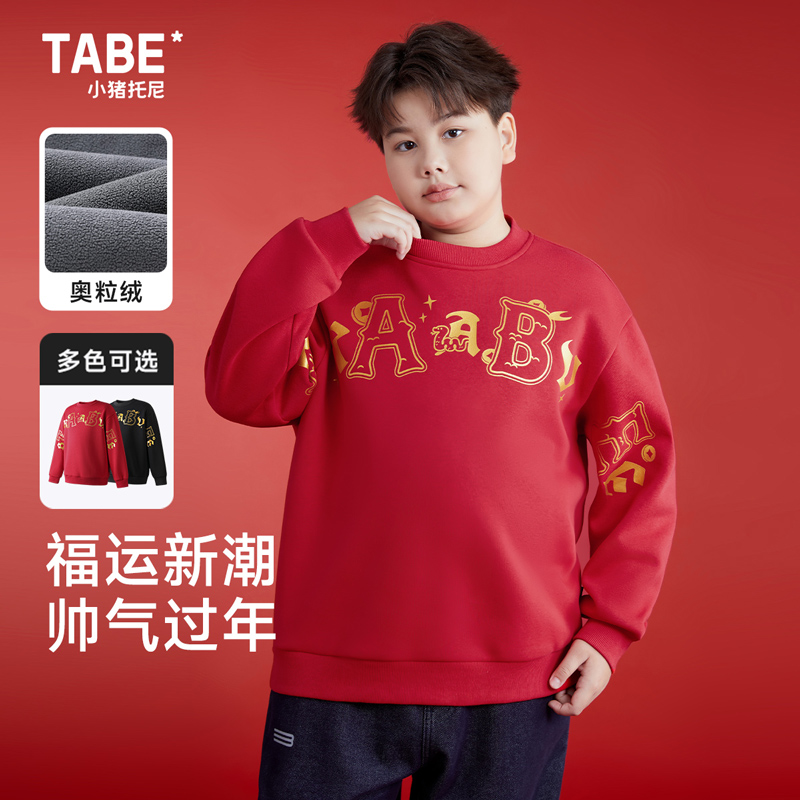 NJ真维斯青少年圆领卫衣新款初中高中显白上衣红色新年服