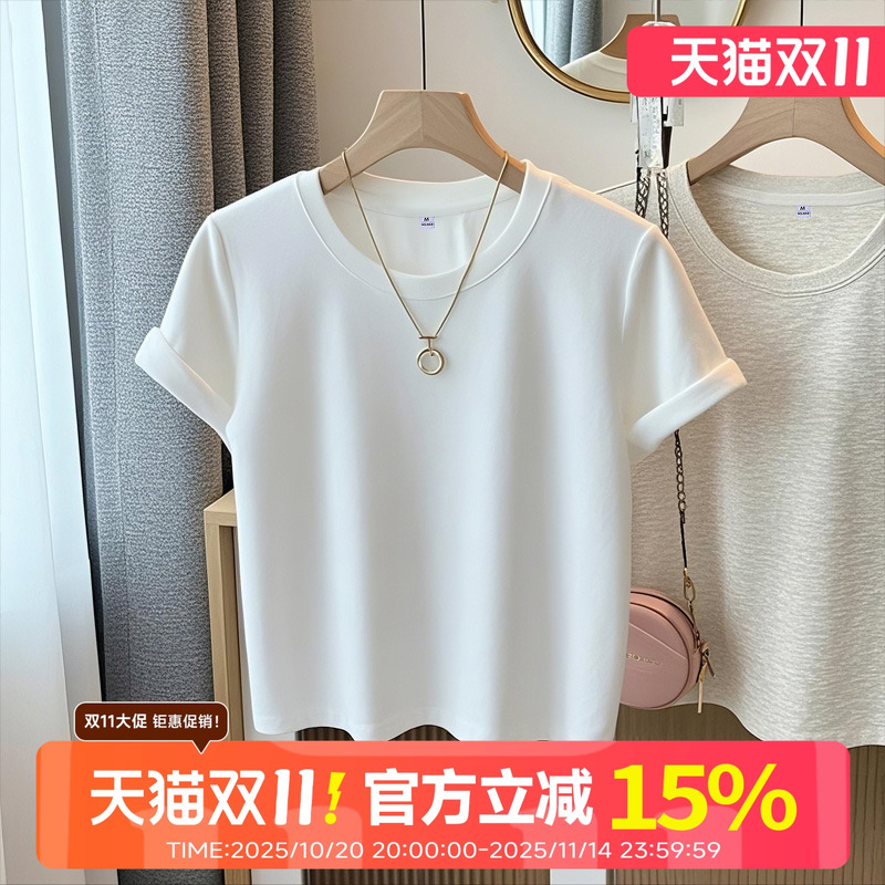 NOB真维斯白色纯棉短袖t恤女2025新款夏季短款青少年正肩半袖
