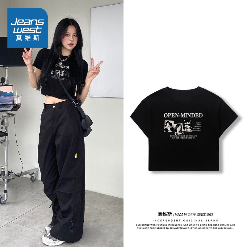 NOB真维斯青少年纯棉正肩短袖t恤女2025新款夏季修身休闲短款