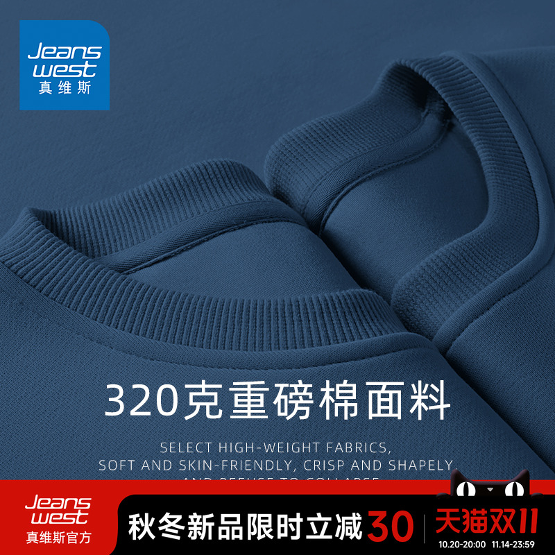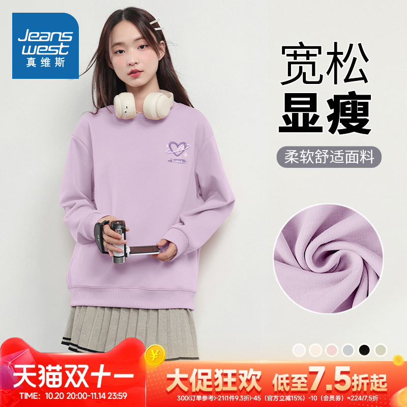GV真维斯重磅卫衣男春秋款青少年学生圆领套头衫宽松外套上衣女D