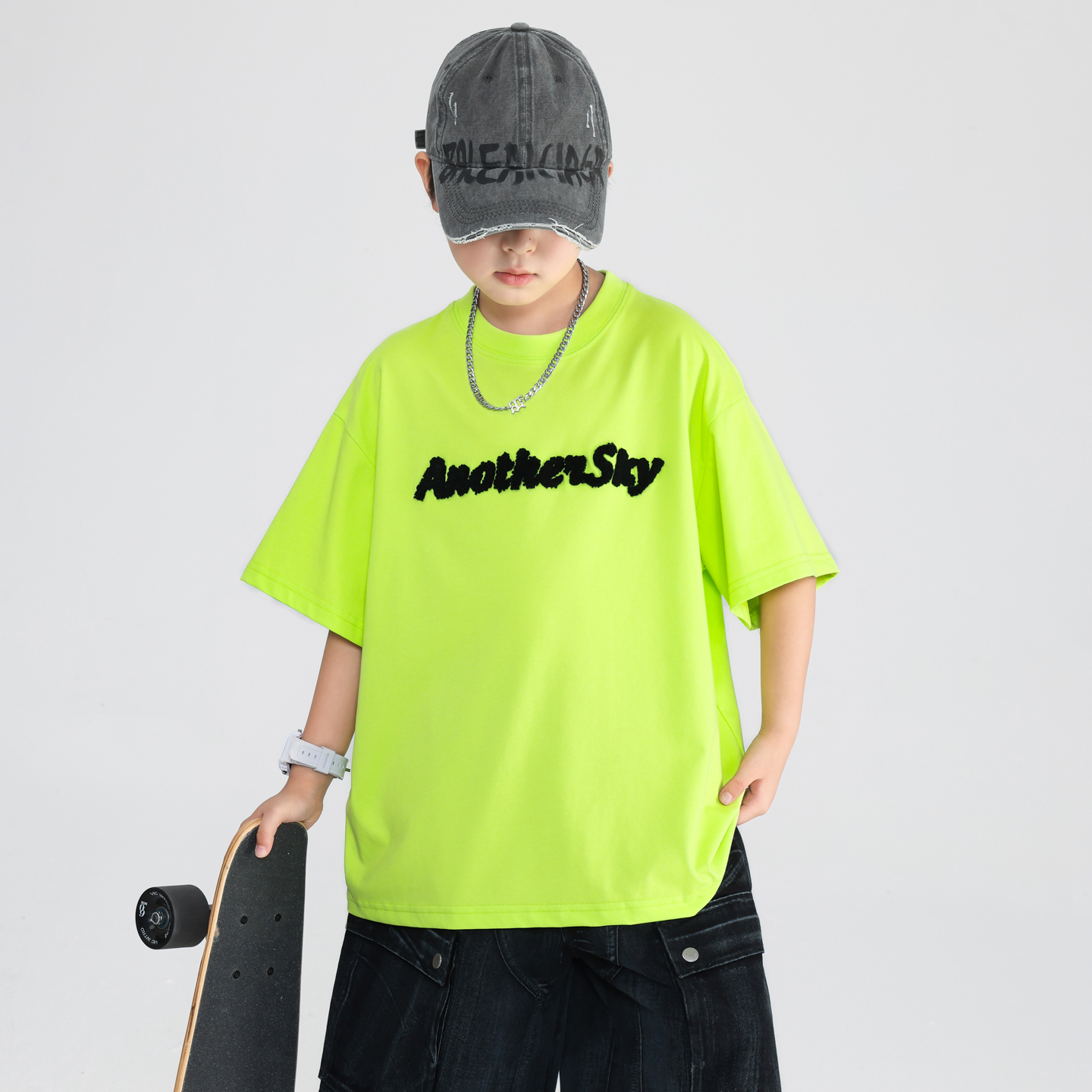 多巴胺毛巾绣宽松冰感短袖T恤潮