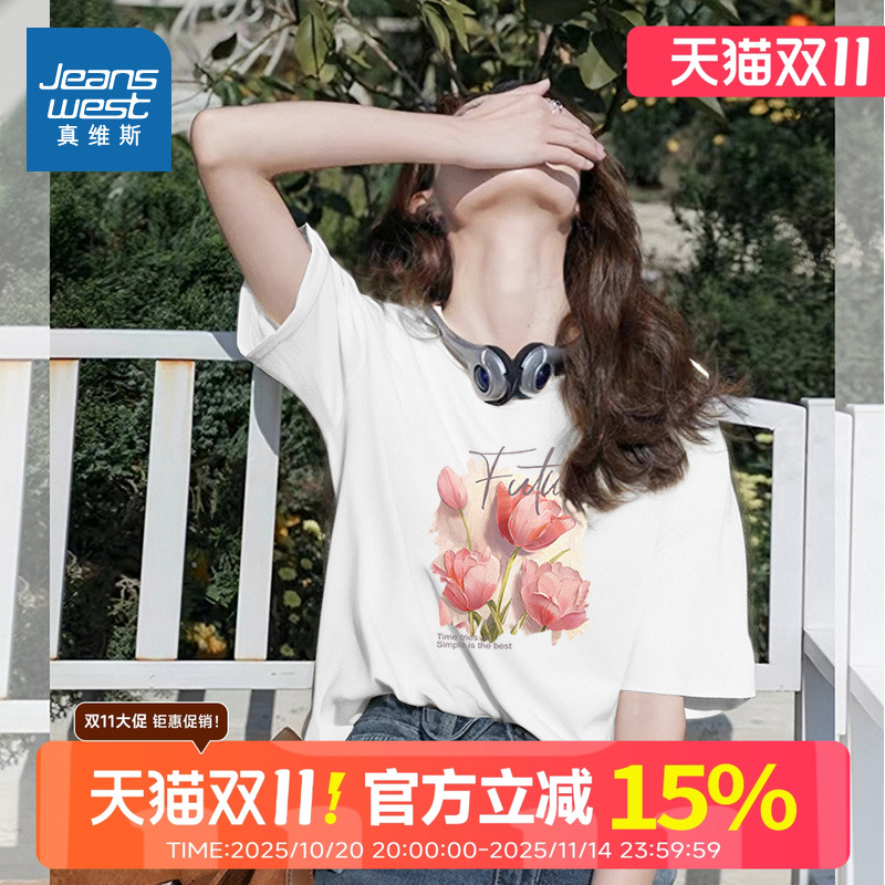 NOB真维斯纯棉青少年短袖t恤女士2025新款夏宽松大码胖mm半