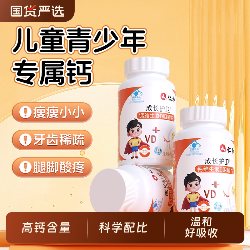 仁和维生素钙片儿童钙铁锌学生青少年长高补钙官方正品