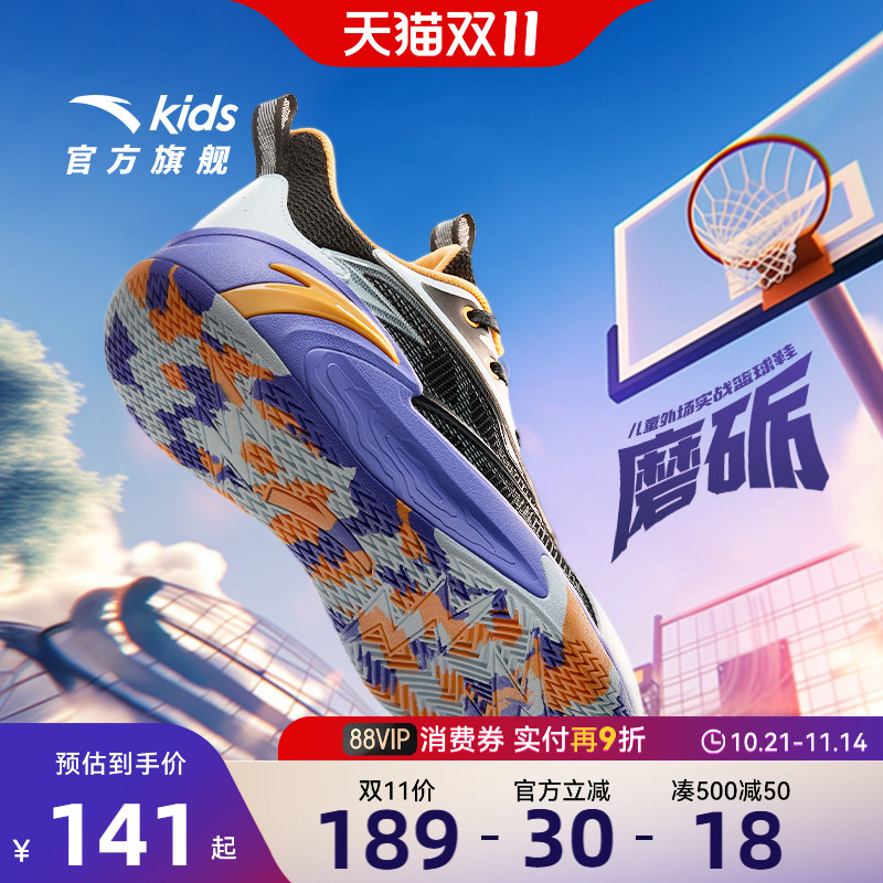 雷暴安踏儿童男高帮旋钮篮球鞋