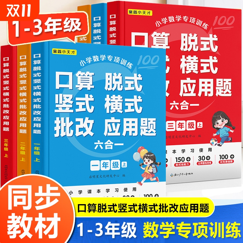 小学数学专项训练口算脱式竖式横式批改应用题六合一二三年级上册下册