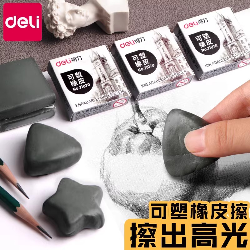 得力可塑橡皮擦拉丝高光美术素描生专用专业绘画小学生擦得干净不留痕