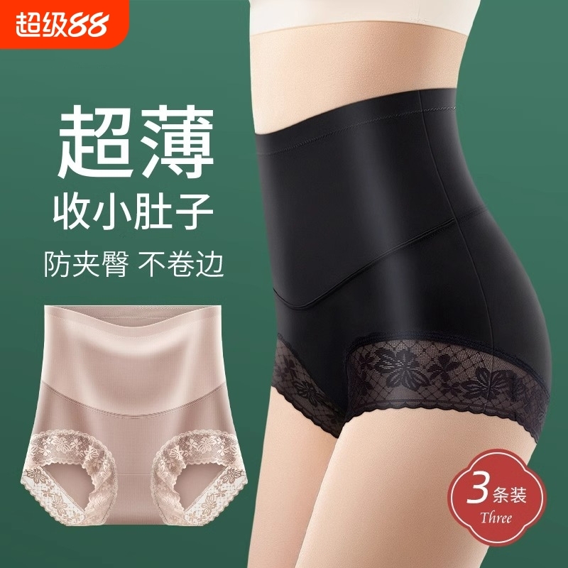 无痕内裤女透气收腹女士提臀平角包臀性感蕾丝收小肚子夏中腰塑形