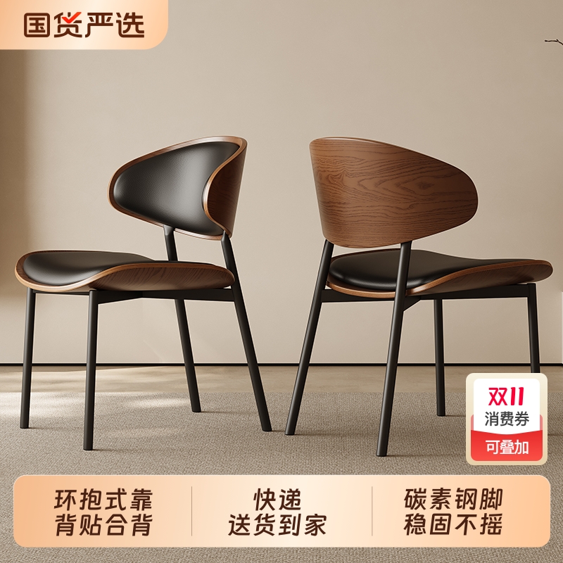 餐椅家用餐桌椅子客厅靠背凳子卧室轻奢酒店意式餐厅久坐结实金属