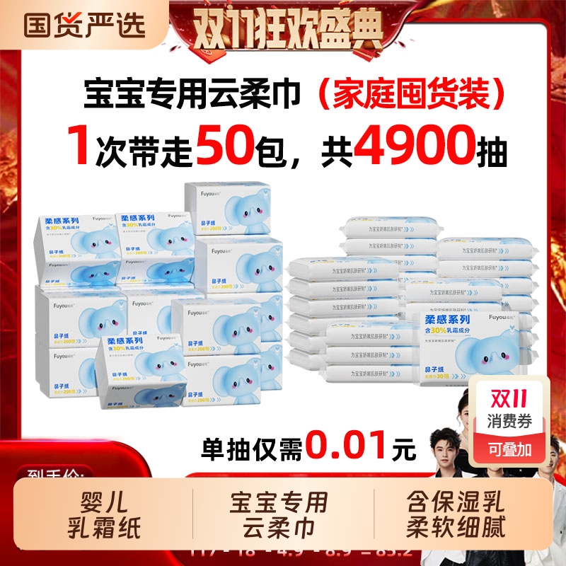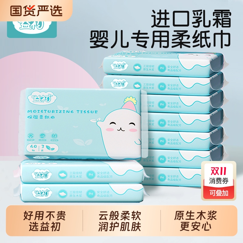 乳霜纸抽纸巾新生儿专用加厚家用超值保湿柔纸巾婴儿擦鼻子实惠