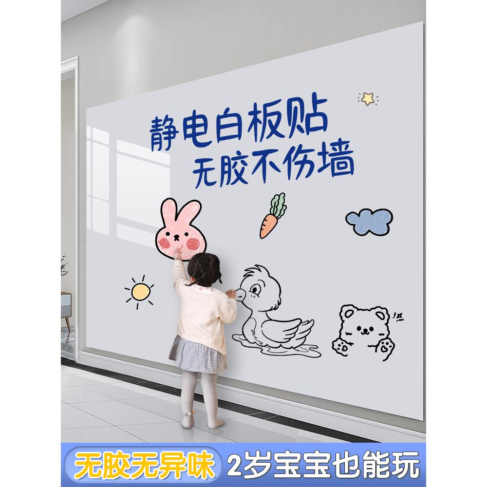 静电白板墙壁贴纸吸附家用可移除免胶不伤墙儿童卧室涂鸦画画板可擦写