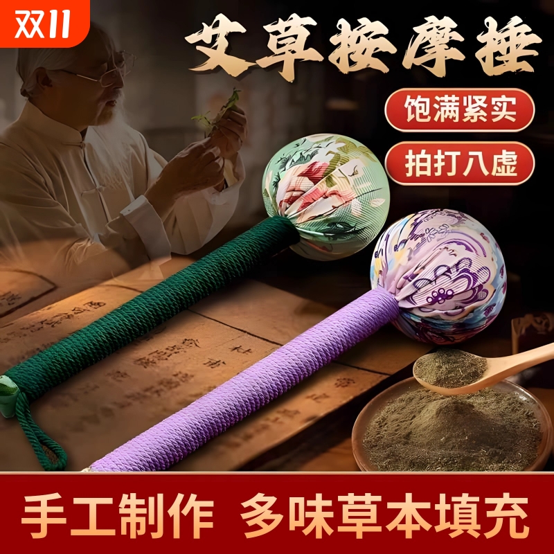 经络拍艾草锤按摩锤拍八虚捶肩颈疏通经络敲打棒养生拍打锤大号