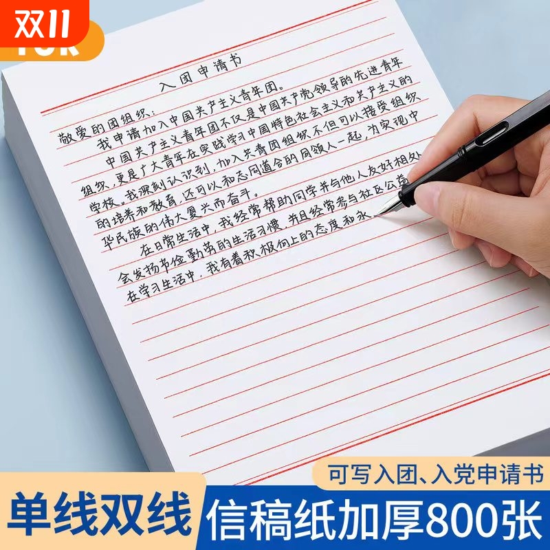 信纸稿纸信笺纸信签纸入团申请志愿书信专用纸大学生用手写信草稿本红