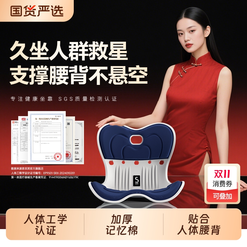 思菲其TPE护腰坐垫久坐不累神器办公室人体工学腰部支撑靠垫背靠