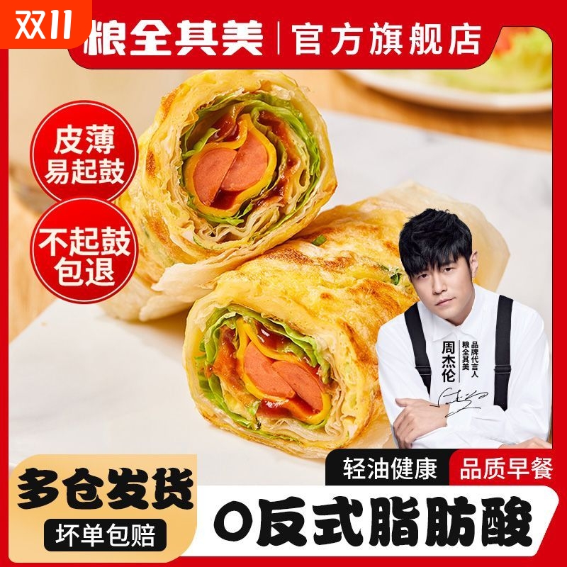 粮全其美鸡蛋灌饼早餐食品半成品煎饼皮速食培根香肠伴侣面点卷饼