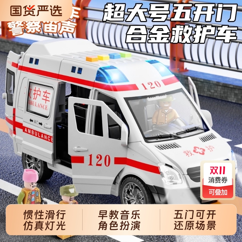 儿童玩具车大号救护车男女孩惯性可开门120仿真医疗警车汽车模型