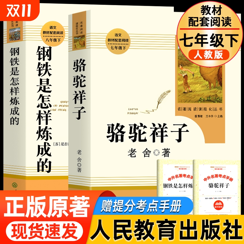 骆驼祥子和钢铁是怎样炼成的七年级下册必读正版配套人教版原著七年级