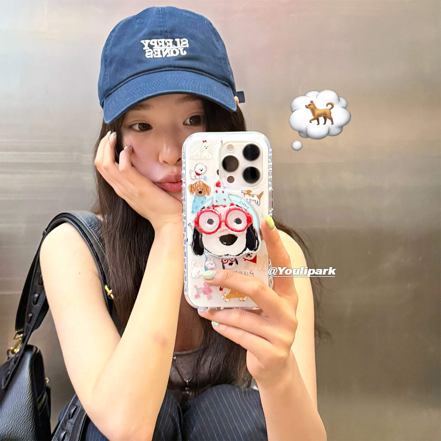 涂鸦眼镜小狗磁吸支架苹果手机壳