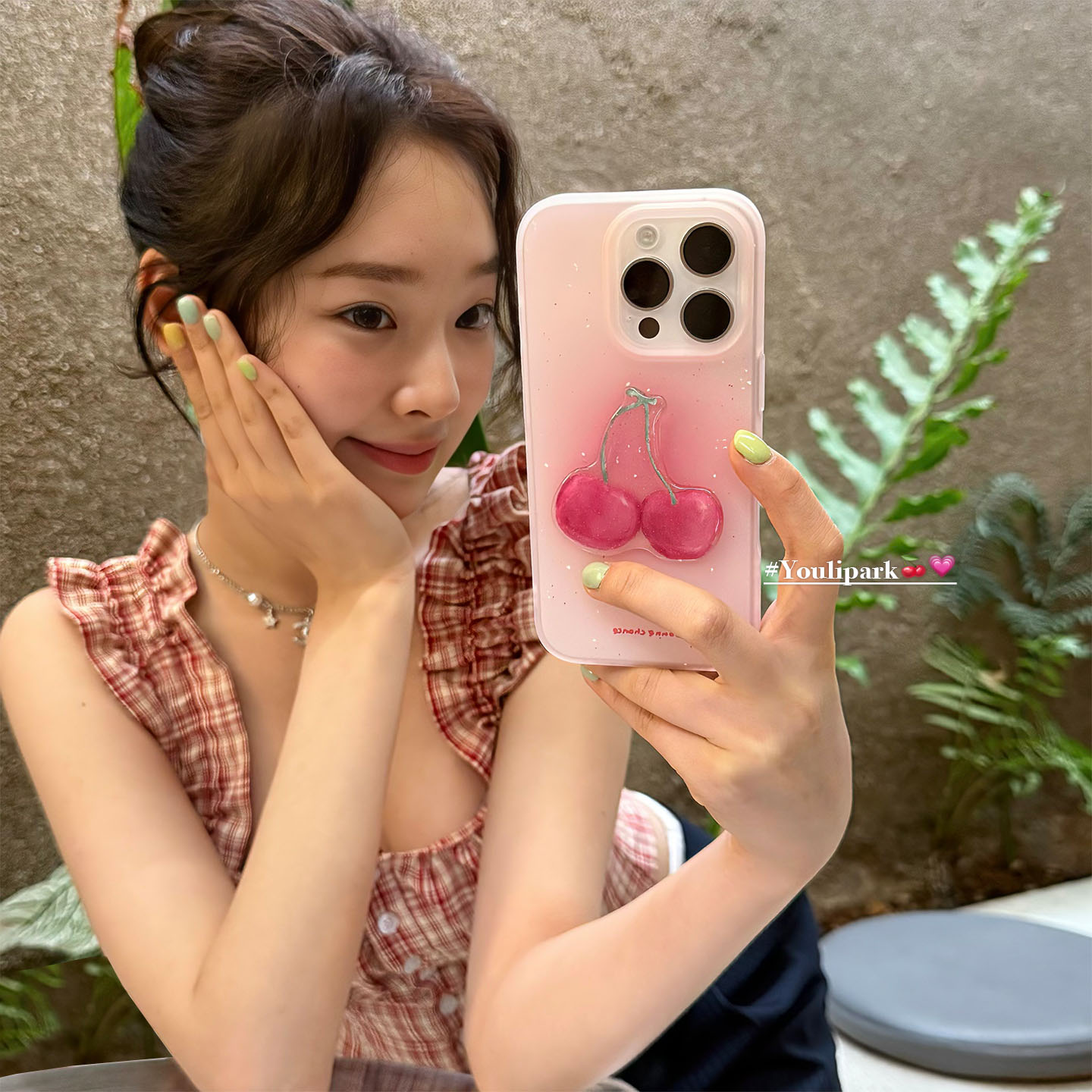 闪粉涂鸦星星樱桃猫咪苹果手机壳