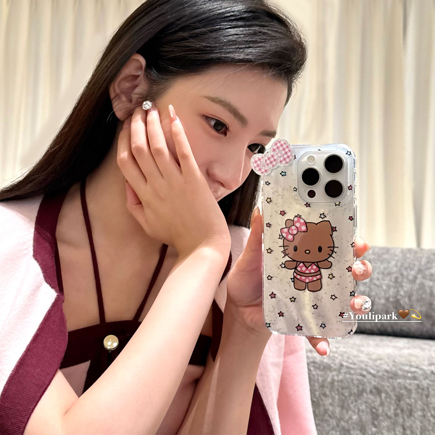 可爱格纹蝴蝶结猫咪苹果手机壳女