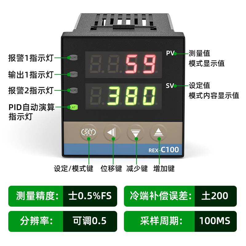 rex-c100数显智能温控器k探头c700烤箱温控表上下限报警