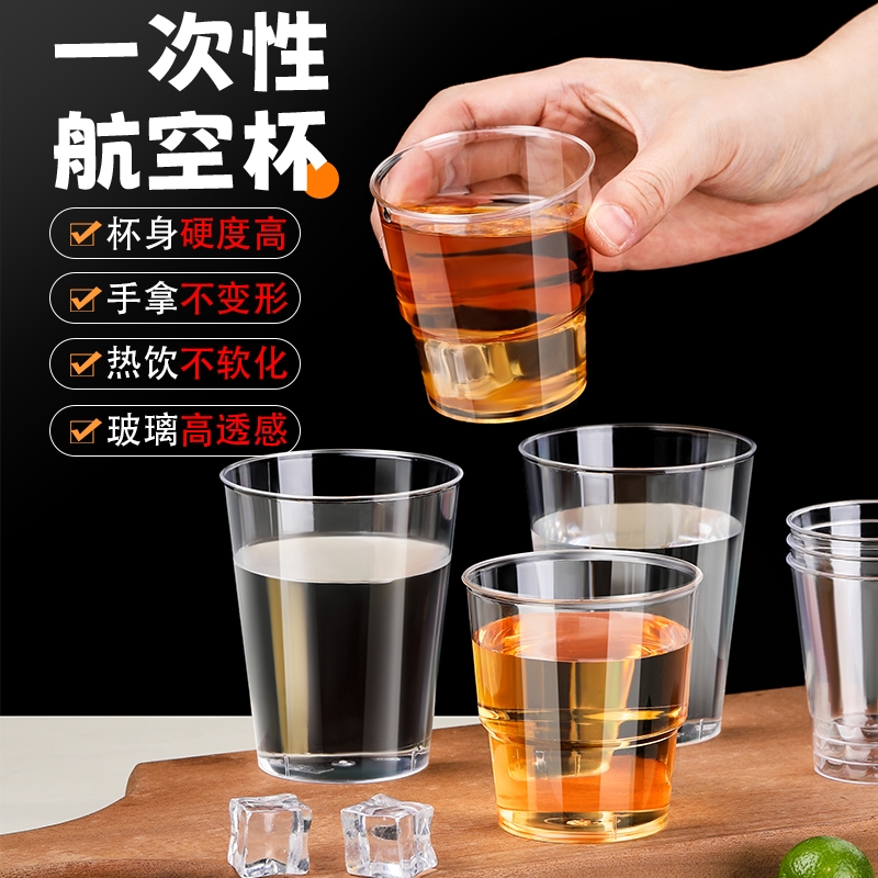食品级一次性杯子180ml加厚航空杯水晶杯子酒席饮料塑杯透明胶杯