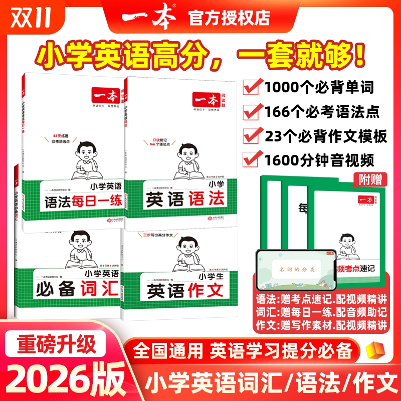 一本小学英语语法英语语法2026小学作文必备词汇三四五六年级人教