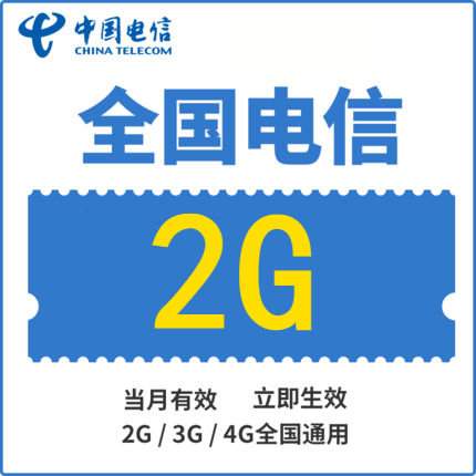 S全国电信全国流量充值2GB月包 当月有效 全国通用 不可提速