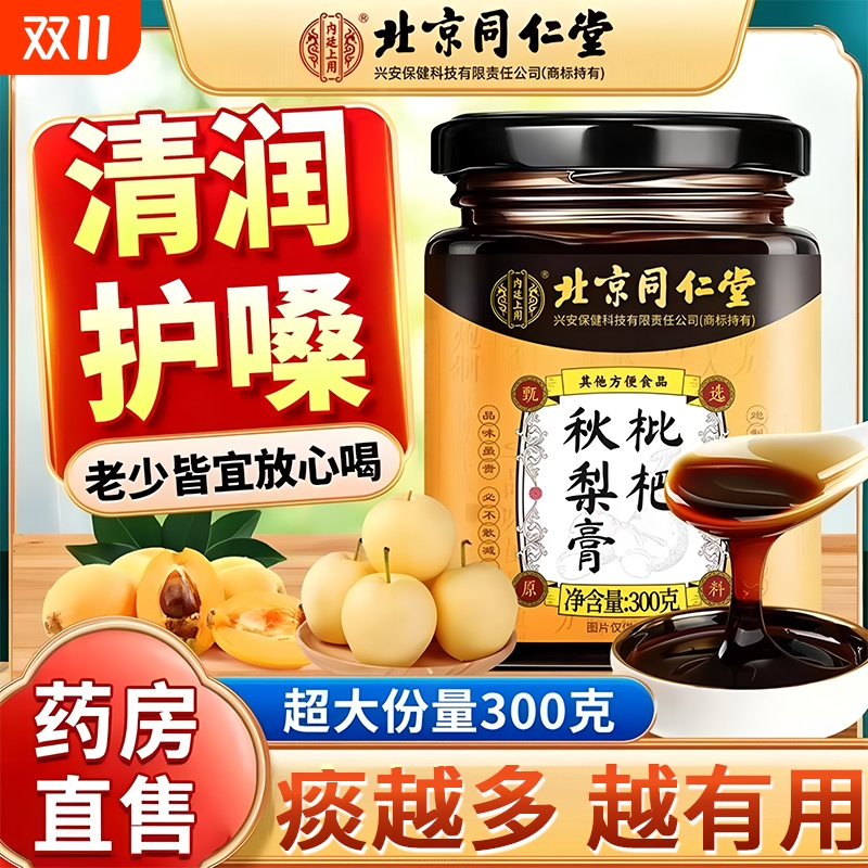 北京同仁堂枇杷秋梨膏润肺止咳化痰无添加儿童成人秋梨膏官方正品