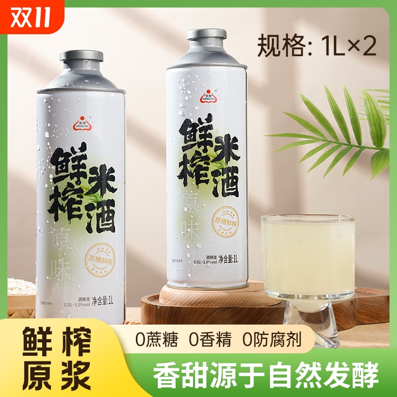 1L装生龙孝感米酒原味鲜榨米酒汁酒酿糯米醪糟汁甜米酒