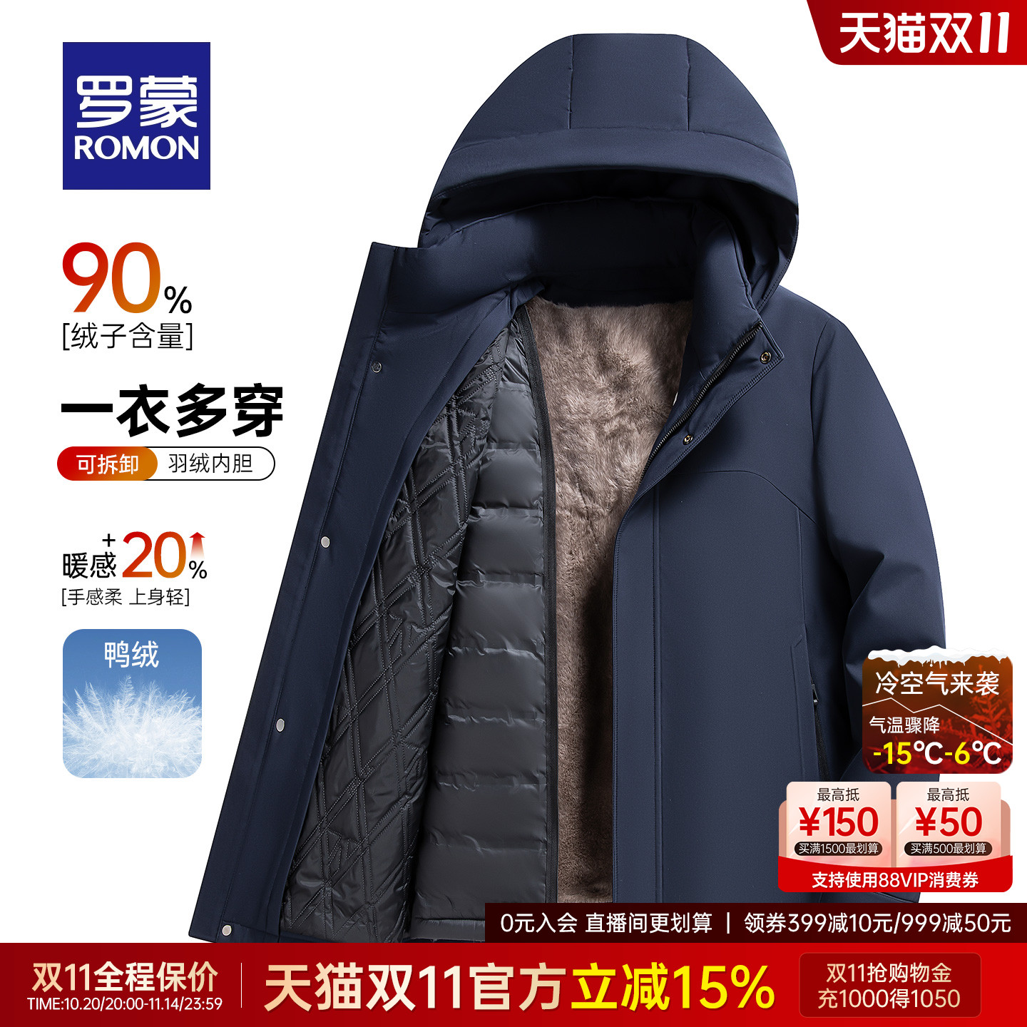 罗蒙牛奶丝一衣五穿男士羽绒服