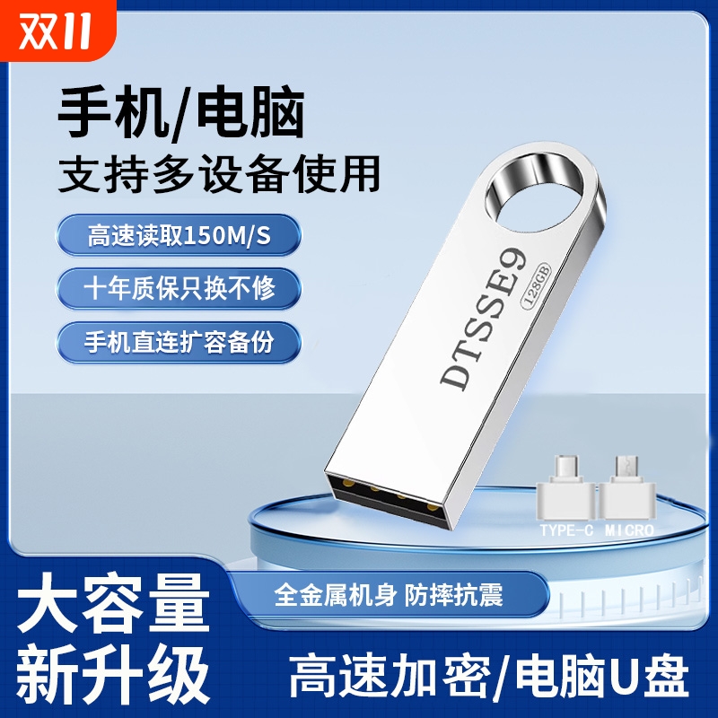 高速金属U盘128g大容量64g手机电脑两用32g车载办公学生迷