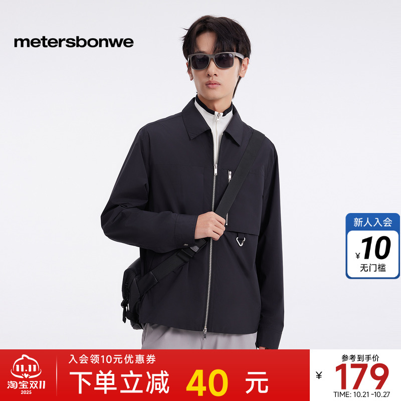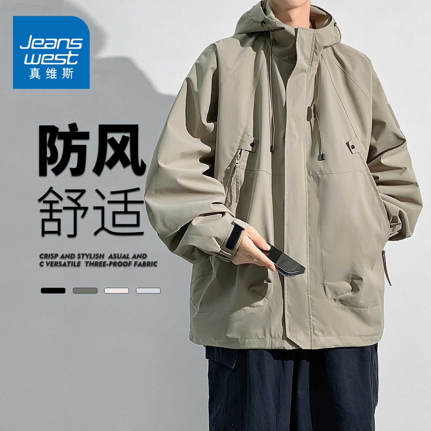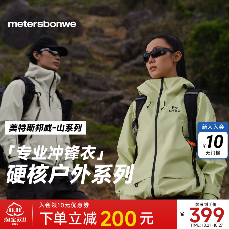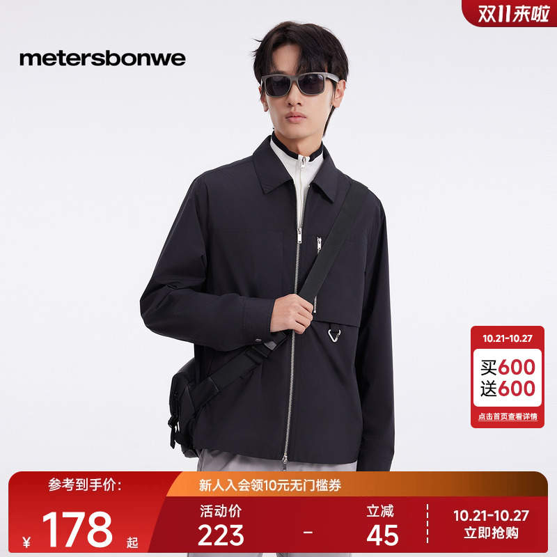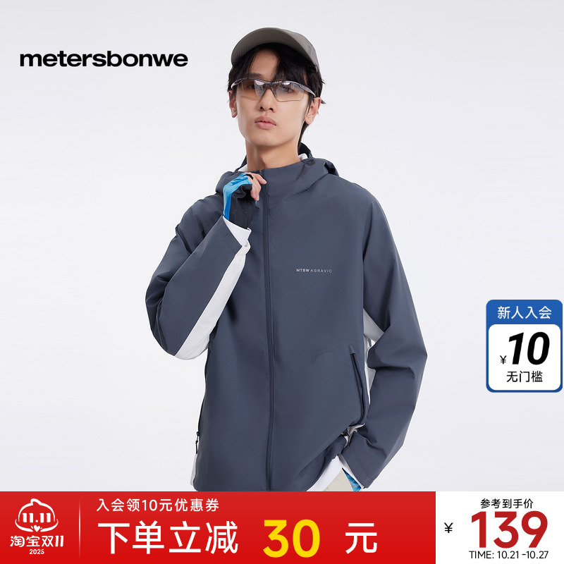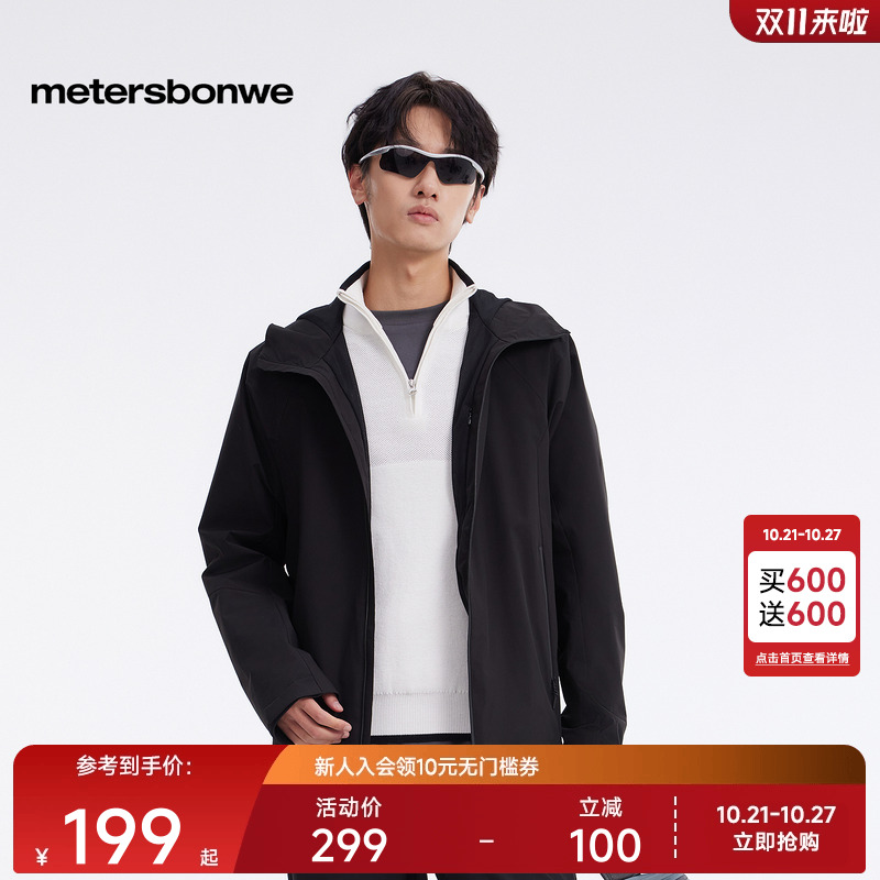 美特斯邦威男女城市户外简洁防泼连帽机能茄克736456