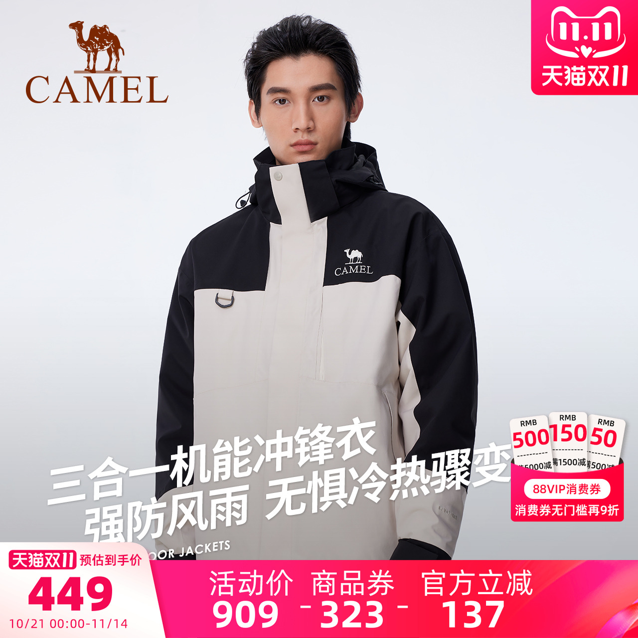 骆驼男装机能登山防风防水抓绒内胆三合一可拆卸冲锋衣夹克外套男