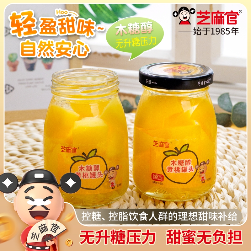 芝麻官木糖醇黄桃罐头水果捞255g*6罐玻璃鲜山楂水果罐头橘子零