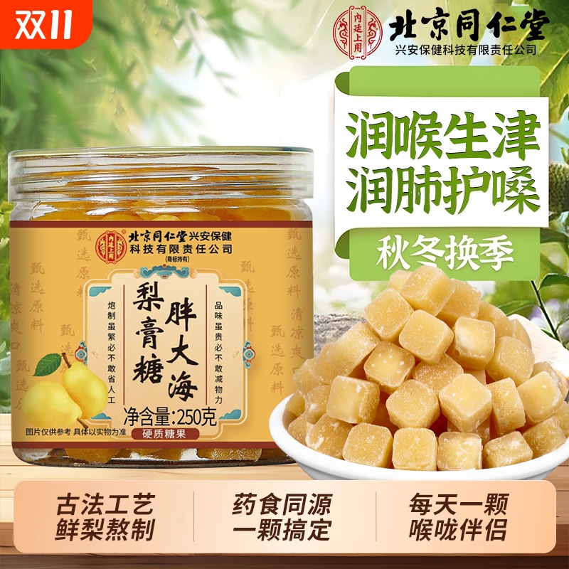 北京同仁堂百草梨膏糖秋梨膏润喉糖胖大海化痰润止咳肺枇杷秋梨膏
