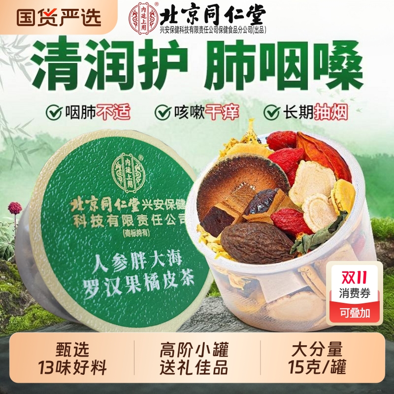 北京同仁堂胖大海罗汉果炎咽茶清肺化痰止咳润喉茶雪梨正品旗舰店