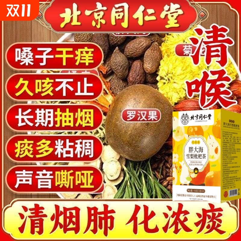北京同仁堂罗汉果胖大海雪梨茶枇杷叶咽喉清肺化痰止咳养生润茶炎